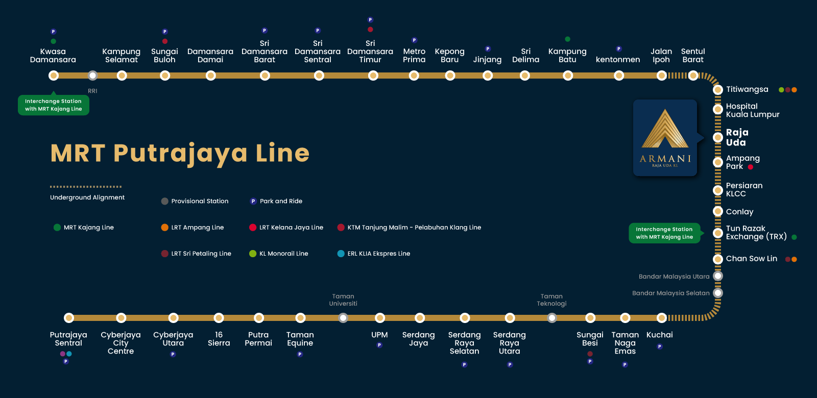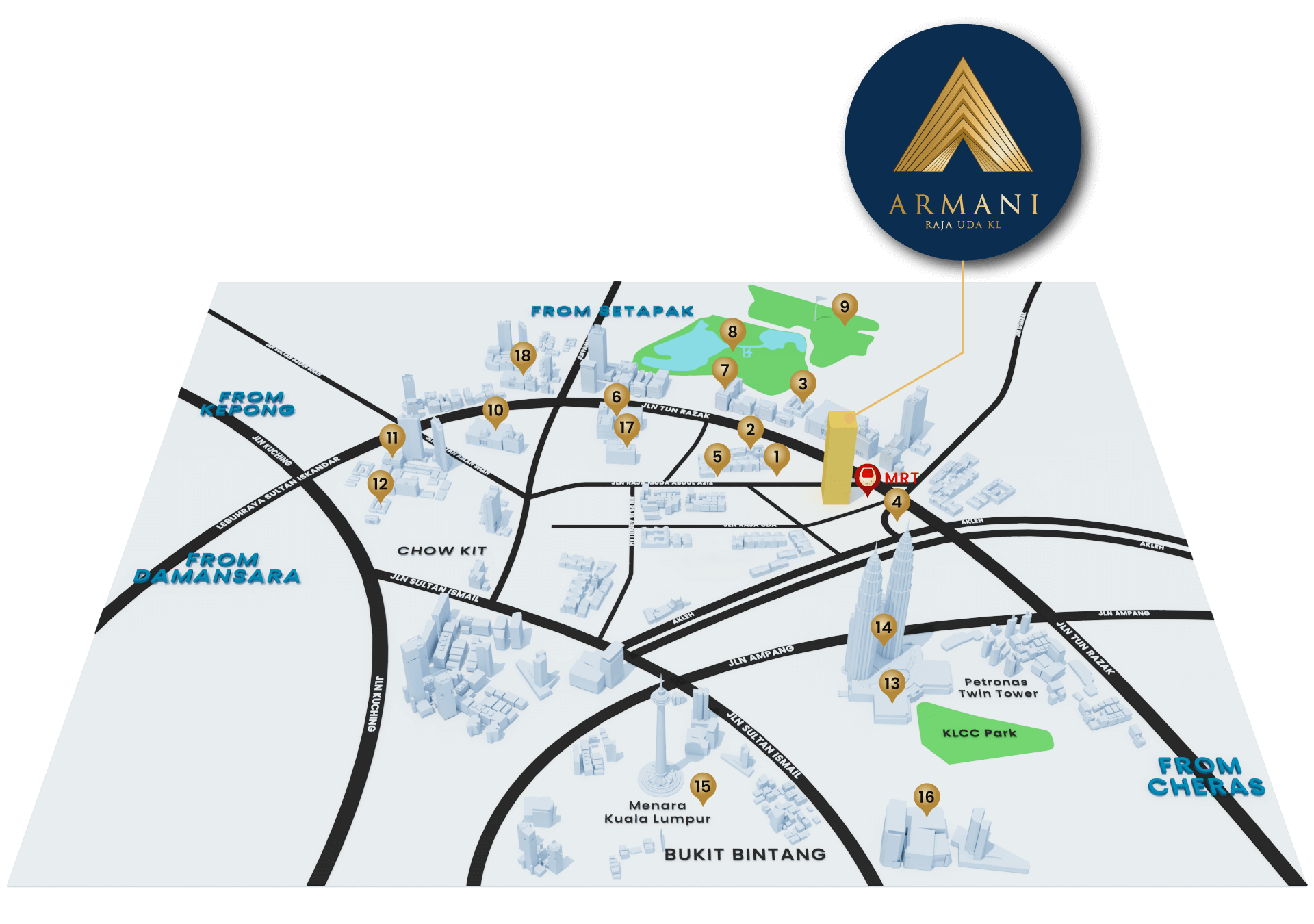 Armani Raja Uda KL is well positioned for a life of discovery. It is located opposite the main entrance of MRT Raja Uda Station (PY19). Which allows easy access to the city’s most frequented destinations